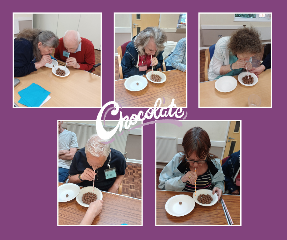 The ‘Every Day Counts’ Broomfield group had a chocolate day, starting with chocolate tasting and Cadbury bingo, then a fun game with Maltesers.  Clients had to suck them up with a straw and move them from one bowl to another.  This was much harder than you first think!